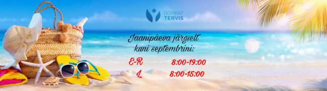 Suvised lahtiolekuajad Dorpat Tervises Uudised/info/artiklidBy Katrin Vask25.06.2025 Augusti lõpuni oleme avatud: E-R 8:00-19:00 L 8:00-15:00
