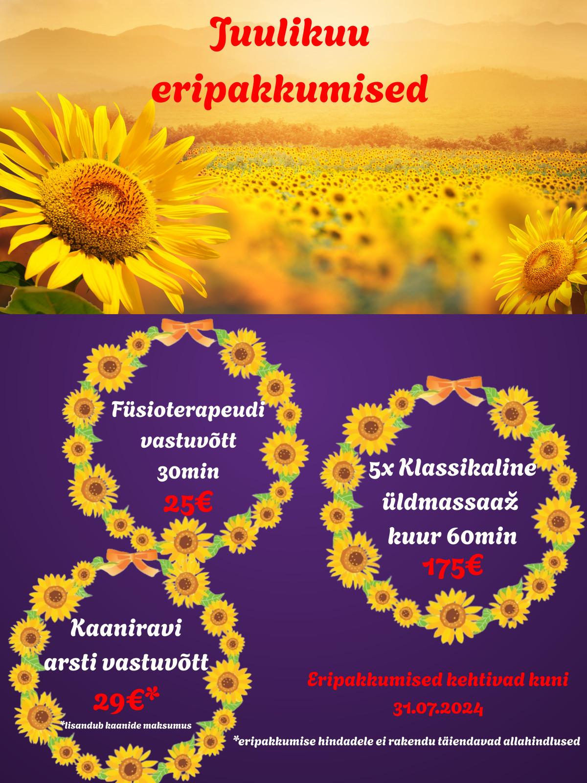 JUULI ERIPAKKUMISED Dorpat Tervises:
