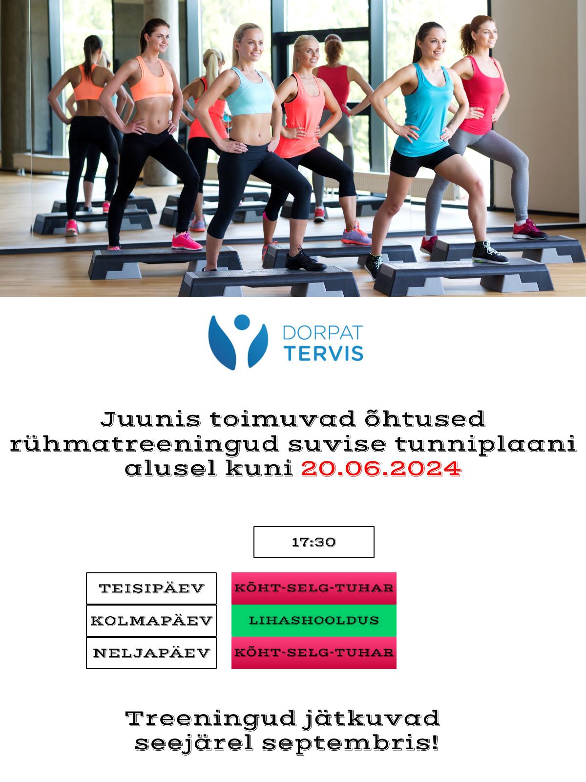 Õhtused rühmatreeningud jätkuvad kuni 20.06.2024 järgmiselt: