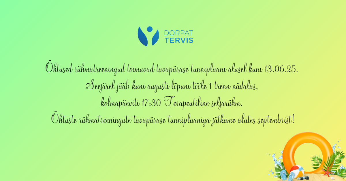 Õhtused rühmatreeningud toimuvad tavapärase tunniplaani alusel kuni 13.06.2025.