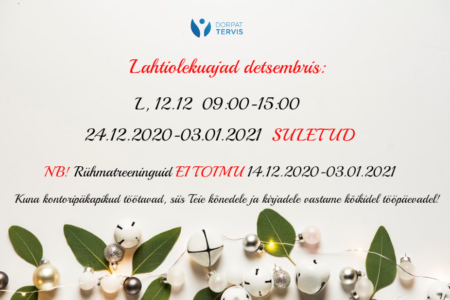 Pühade eel ja ajal oleme avatud:
