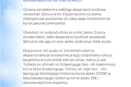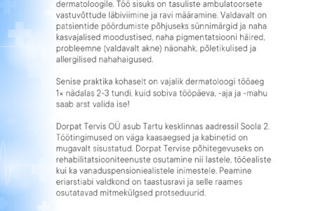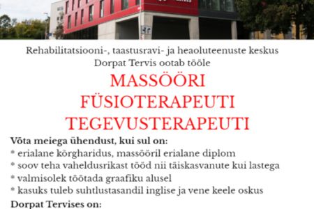 CV-d ja motivatsioonikirja ootame aadressile: info@dorpattervis.ee. Lisainfo telefonil: 511 7700.