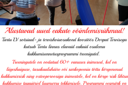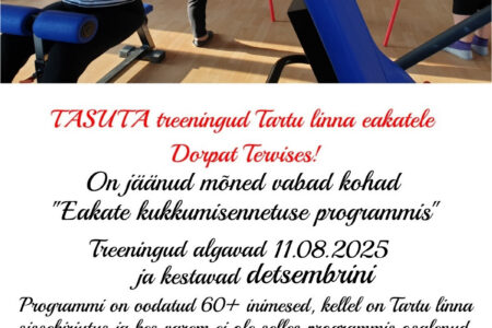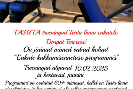 Vabanenud on mõned kohad TASUTA “Eakate kukkumisennetuse programmis”, Lisainfo ja registreerimine: 7337 196 või 510 9944.
