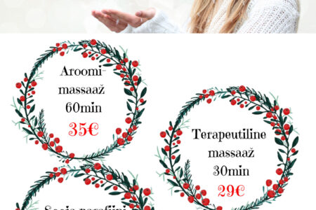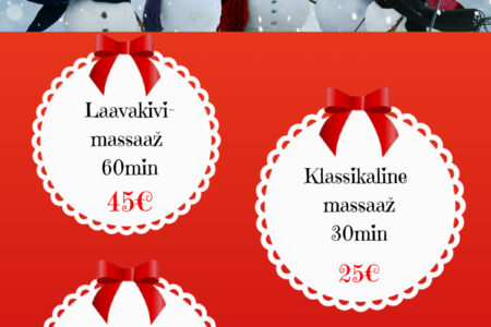 Jõuluaeg on käes! DETSEMBRI ERIPAKKUMISTE hulgast leiad midagi head endale, sõbrale ja jõuluvana kingikotti Laavakivimassaaž 60 min 45€ / tavahind 55€ Klassikaline massaaž 30 min 25€ / tavahind 35€ Rühmatreeningute 5x pääse 29€ / tavahind 45€ Broneeri aeg: 510 9944, 7337 196 või bron@dorpattervis.ee Saadaval ka kinkekaardid detsembri eripakkumiste hindadega!