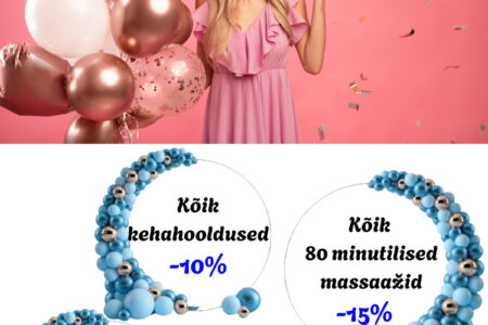 AUGUSTI ehk sünnipäevakuu ERIPAKKUMISED Dorpat Tervises: Kõik kehahooldused -10% Kõik 80 minutilised massaažid -15% Kõik depilatsioonid -20% Broneeri aeg: 510 9944, 7337 196 või bron@dorpattervis.ee Saadaval ka kinkekaardid augusti eripakkumiste hindadega!